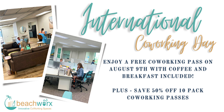Don't miss out on this opportunity to celebrate International Coworking Day at Beachworx. Reserve your spot now and experience the benefits of coworking by the beach!
